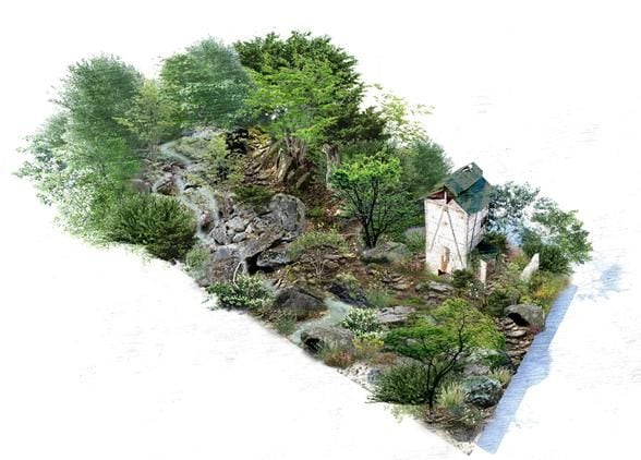 ‘백만 년 전으로부터 온 편지’는 지리산 동남쪽 약초 군락을 모티브로 한 작품이다. 총 200t 무게의 바위들을 배치해 지리산 숲속 지형을 재현했다. 바위 사이엔 지리산 젖줄을 표현한 작은 개울이 흘러 습도를 조절하도록 했다. 사이사이에는 지리산에만 있는 지리바꽃과 멸종 위기종인 나도승마, 산삼, 더덕 등 식물 300여 종이 자리했다. 약초꾼들의 건조장도 세워졌다.