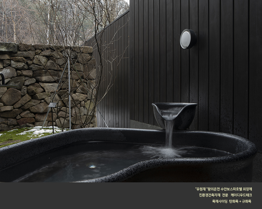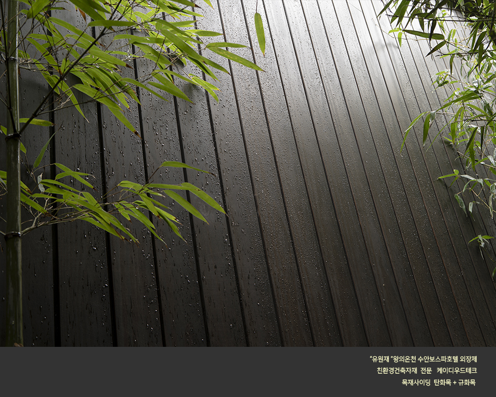 - 규화목 (Siliconized Wood): 목재 내부에 규소 침투시켜 불연, 방수, 내구성 향상시킨 제품으로서 규화처리 비용이 점점 낮아지고 있으며 은회색으로 빛나는 외관을 자랑한다 , 유지관리 비용이 저렴하다.