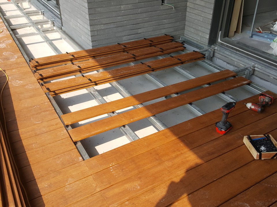 2. 데크 설치에서는 하지 기초에 고정한 후에 데크 패널을 설치합니다.