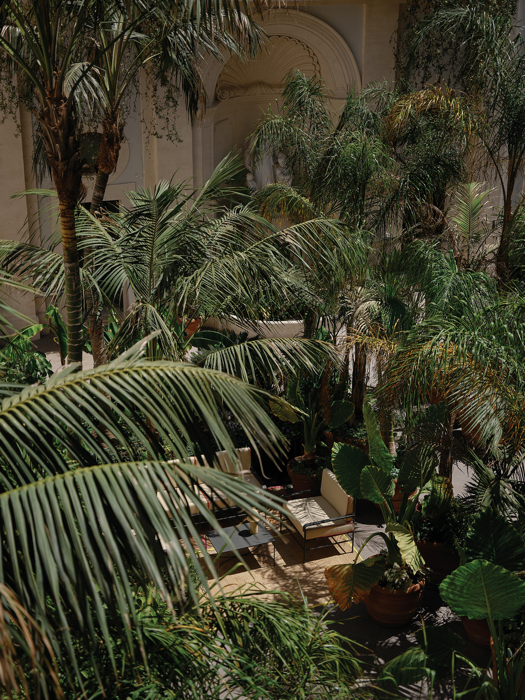 구아다니노 스튜디오는 바를 위해 시칠리아 도예가에게 물결치는 듯한 질감을 가진 바와 테이블 상판 제작을 의뢰했고, 웰니스 공간의 초록색 타일은 스페인 장인이 공급했다. 조경 아티스트 블루 맘보르(Blu Mambor)와 협업한 안뜰 정원은 거대한 야자나무와 각종 식물을 심어 지중해와 열대 오아시스의 혼종 같은 공간을 만들어낸다.