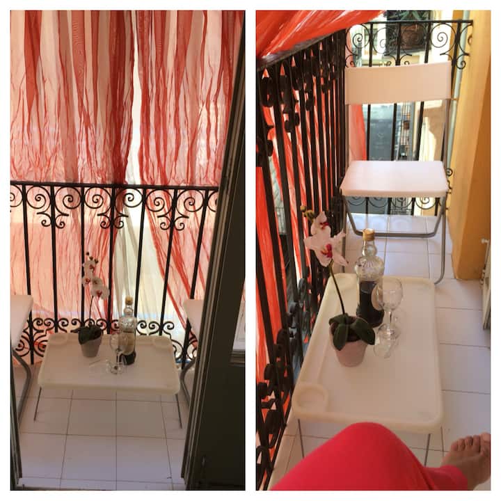 발코니가 있는 매우 멋지고 넓은 객실, 중심부에 있음에도 불구하고 잠을 잘 수 있는 조용한 객실입니다.