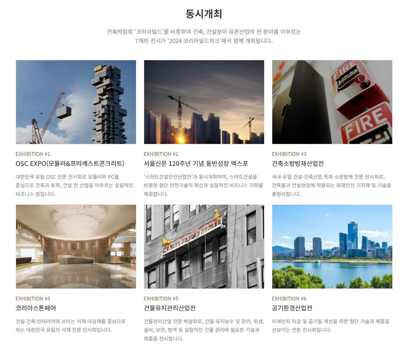 건설 건축 관련 동시개최 사업전을 다음과 같습니다. 2024년을 주도할 산업 정보가 모여 있습니다.