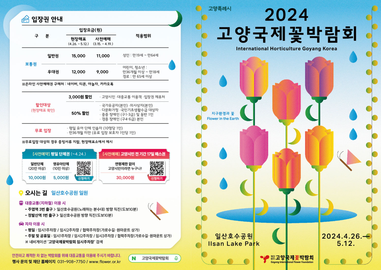 입장권 및 관람시간: 고양국제꽃박람회 공식 홈페이지에서 입장권 구매 및 관람시간 확인이 가능합니다. 방문 전 사전 예약을 통해 더욱 편리하게 박람회를 즐길 수 있습니다.